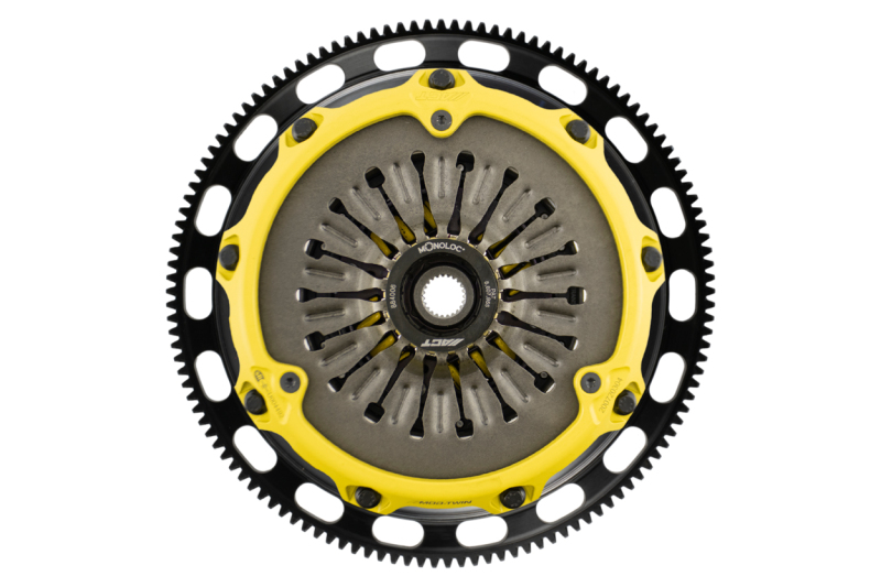 Predictable aggressive engagement, light pedal effort, smooth shifting, possible start-off judder with OE to mild transmission gear noise; Forged Aluminum Cover, Mono-drive hub, exclusive diaphragm, premium friction materials, and hardened wear points ensure this long-life twin performs and survives under the most demanding conditions; Delivers maximum performance and high heat tolerance by combining robust design, strategic features, choice materials, and close tolerances; Drag, Road, or Rally Racing; Applying tactical engineering to the MOD-TWIN, ACT presents unique solutions to common tradeoffs found on twin disc clutches, resulting in an ultra-durable, customer serviceable, long-lasting clutch with very high torque capacity. All are 100% clamp load tested, balanced and SFI certified