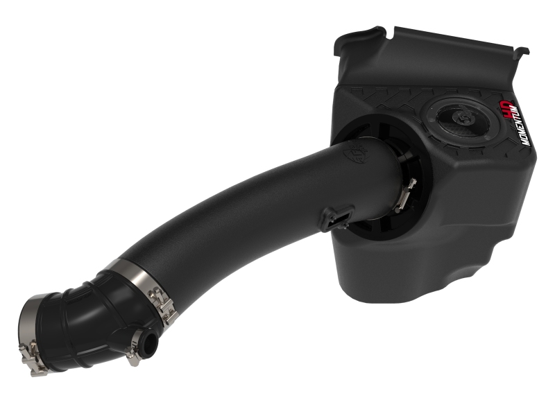 Momentum*s unique filter-to-housing interface was built to feature the largest air filter possible. This 8* tall, pre-oiled 360-degree radial flow air filter has a 4* round flange and features our non-oiled Pro DRY S media. The Pro DRY S performance air filter features 3-layers of progressively finer porosity synthetic media that does not require oil providing maximum convenience. Its inverted top and large surface area provide much longer life between maintenance intervals, while reinforced metal provides maximum strength to prevent filter collapse. The smooth one-piece sealed housing, constructed of heat-resistant cross-linked polyethylene (XLPE), features our patented pending filter-to-housing interface. Its innovative design minimizes the total number of parts, making for an easy installation. A large, clear sight window allows for hassle-free filter inspection, without having to disassemble your system. The soft EPDM hood seal is included to keep out hot engine air and create a perfect seal to the hood. This system features a high quality, computer-designed, dyno-tuned intake tube to achieve maximum power gains while maintaining a perfect fit. Its XLPE material is heat soak resistant and extremely durable. Momentum HD intakes are designed with fewer parts for a fast and easy installation. This is a direct fit intake system that utilizes factory mounting points and requires no cutting or modifications. All necessary clamps, couplings, and hardware are included