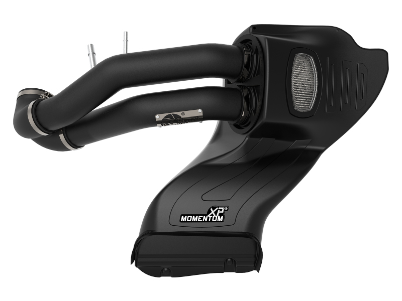 One-Piece Housing with Sight Window:A custom computer designed housing eliminates the use of multiple components. It*s roto-molded and made from heat soak resistant cross-linked polyethylene, ensuring the coolest air intake charge possible. A clear sight window allows for filter inspection without removal of the airbox. The housing is designed to retain the same stock mounting points as the OE intake system for a hassle-free installation.Dual Inlet Large 3-Layer Performance Air Filter:This sealed intake system utilizes a radial flow performance air filter with three oil-free progressive synthetic media layers for maximum convenience. The unique filter-to-housing interface allows for maximum filter size which increases the available air volume while simplifying the installation process.Dual 3″ Mandrel-Bent Tubes w/ Custom Silicone Coupling:Dual mandrel-bent wrinkle-black powder-coated aluminum intake tubes direct unrestricted airflow from the filter to the throttle body for more horsepower and torque. A custom reinforced silicone coupling merges the dual tubes into a single outlet to connect to the throttle body.Premium Hardware:Premium stainless-steel worm-gear clamps provide the best corrosion resistance possible. Momentum XP intakes are designed with fewer parts for a quick and simple installation.