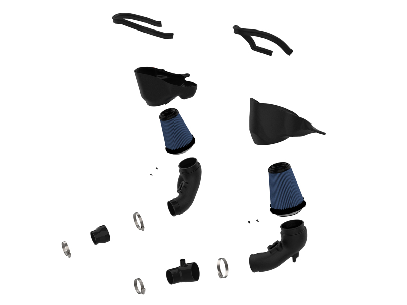 These 360-degree radial flow air filters feature our pre-oiled Pro 5R media with five layers of progressively finer cotton gauze media for maximum performance. They provide your engine with the largest amount of high-flowing air, usually resulting in the highest power gains out of all our filter media options. This media is perfect for street and/or track use. Their inverted bullet-style tops makes for more filter surface area, resulting in longer service intervals. The included performance air filters are surrounded by open-element XLPE polymer (cross-linked polyethylene) housings that minimize warm engine air for maximum performance. The open design allows for easy viewing of the air filters and delivers an aggressive Air Intake sound. They utilize the vehicle’s OE air inlets with no additional hardware. This system features high quality, computer-designed, dyno-tuned intake tubes to achieve maximum power gains while maintaining a perfect fit. Their XLPE material is heat soak resistant and extremely durable. The computer designed system utilizes factory mounting locations, minimizing the use of unnecessary hardware and ensuring a perfect fit every time. Its innovative design makes for a hassle-free, direct bolt-on installation process that requires no cutting or drilling. It features our patent pending filter-to-housing interface that uses half the number of parts of a traditional cold air intake system.