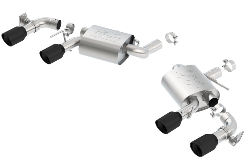This system features the aggressive ATAK(r) sound with no drone inside the vehicle. The 2.75″ diameter system and is designed for vehicles with Dual Tips and Dual Mode Exhaust (NPP) valves. This system has functioning NPP valves. By adding Borla(r) X-Pipe with Mid-Pipes part number 60607 (WITHOUT AFM Valves), or 60610 (With AFM Valves) you can create a Cat-Back(tm) system for your Camaro SS Coupe. The X-Pipes with Mid-Pipes do NOT fit Convertibles. Each muffler assembly has a durable high temperature black finish on dual 4″ round T-304 stainless steel tips on each muffler assembly. Systems with polished T-304 stainless steel tips, and carbon fiber tips are also available. Borla(r) Cat-Back(tm) & Axle-Back exhaust systems feature patented straight-through and multi-core technology to unleash hidden horsepower. Increased exhaust velocity adds power, driving excitement, fuel economy, and the distinctive Borla(r) Sound of Power respected by motoring enthusiasts everywhere. Each system is built from premium T-304 austenitic stainless steel, superior to T-400 series knockoffs (such as 409), to give you the absolute best in performance and durability. Ultra-smooth mandrel bends ensure maximum flow & power, and precision computer numerical control (CNC) manufacturing ensures an accurate fit. Best of all, Borla(r) stands behind every system with a Million-Mile Warranty. Just what you’d expect from the world’s most experienced (and most winning) exhaust brand.