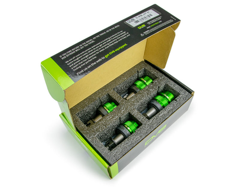 DV8’s JKBLJNT-01 is designed for rugged off-road use. DV8 uses SAE4140 chromoly steel studs and SAE1045 steel housings to make one of the toughest ball joints on the market. These ball joints are also greaseable which allows for standard maintenance and increased longevity. The grooves on the side of the housing are closer together resulting in superior resistance to turning that can occur and also helps makes the install easier. Details: SAE4140 and SAE1045 steel, Greaseable, 1-year limited Warranty, For Jeep JK Dana 44, Front and Rear.