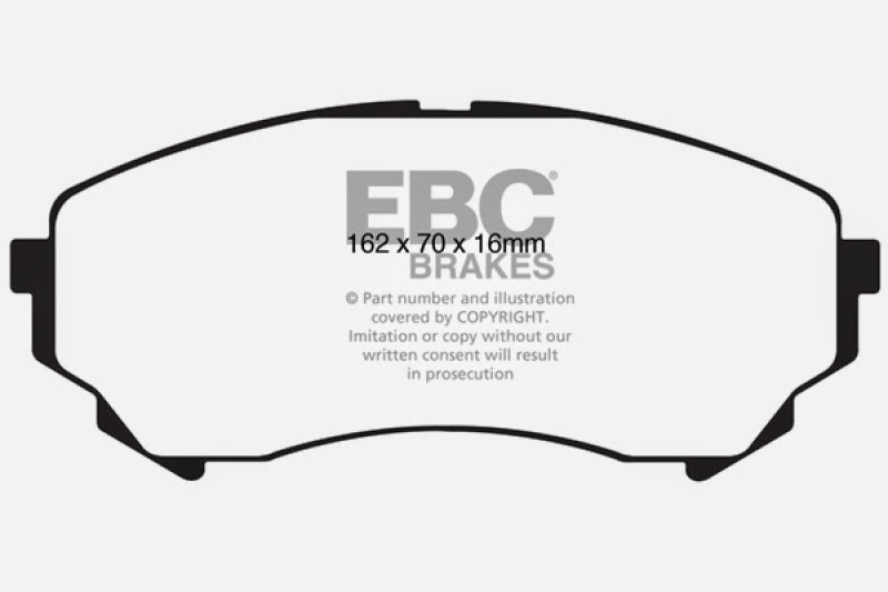 If you simply need a quality OEM replacement pad, look no further than Ultimax. Made in the UK Bristol EBC Brakes manufacturing plant Ultimax is a beautifully engineered brake compound that lasts well, produces minimal dust and is the perfect choice for the urban or daily driver. Why spend more if all you need is a quality replacement pad.The Ultimax pad does include a small percentage of steel fibre to achieve its price point, far less content than our competition where steel fibre content can attain 50 volume and this optimum fibre blend is what makes Ultimax both popular and unique amongst brake blends .Once bedded in Ultimax will inspire confidence in any car light truck or SUV no matter how you drive.Its universal heat range abilities and low rotor wear are additional benefits of the Ultimax pad range which is the EBC worldwide number one selling brake with numbers of sets sold running into tens of millions over the recent years. Unlike many of our performance grades Ultimax has remain unchanged as a pad compound for ten years now, a true testament to its success and customer acceptance. Why change a winning formula.Black coded in the EBC range EBC Ultimax is a fully ECE R 90 approved brake pad range and at its lower price point, less than HALF the price of original parts yet TOTALLY EQUIVALENT by nature of its R 90 brake safety approval, Ultimax offers great value for money and first class driving safety.When replacing brakes of any kind please remember how important brake safety is to your own well being and either have a professional mechanic install your new brakes or if you are a qualified mechanic use the EBC installation DVD as a guide in support of your vehicle owner’s manual. These installation guide DVD tasters can be viewed here and the full DVD purchased from online vendors.