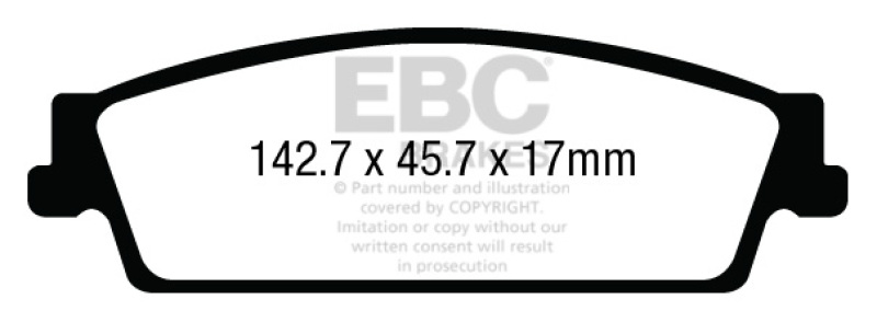 6000 Series Greenstuff Truck/SUV Brakes Disc Pads; FMSI Pad No. D1707; Pad Dimensions: 142.8 x 45.7 x 17mm;