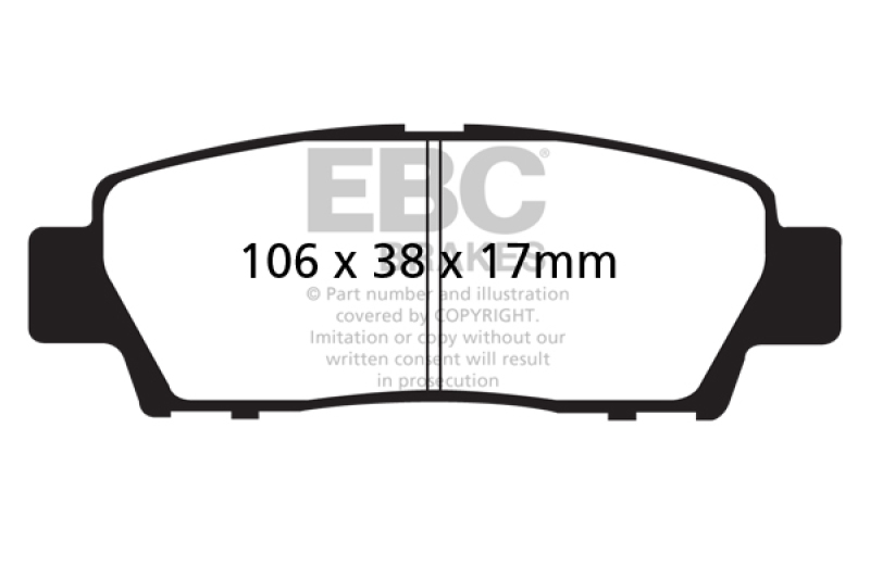 Designed for premium street driving offering better brake effect up to 600-degrees C (1100-degrees F). EBC Greenstuff has a high initial brake effect and gives drivers confidence from first application of the brake pedal. There is no such thing as a NO DUST pad. The very nature of how a brake works requires that some dust be generated to avoid rotor vibration (shimmying). The EBC pad creates less dust and dust is more easily washed off than most. All pads create more dust as they are bedding in especially if rotors are worn. Nominal friction coefficient 0.55. For heavier faster cars and vehicles above 200bhp we strongly recommend Redstuff which DOES offer much less dust.