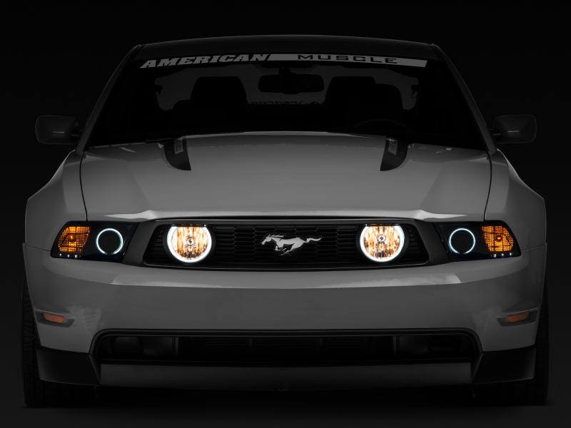These Mustang chrome fog lights feature high intensity white LED “Halo” rings for super aggressive styling. Halo fog lights are a perfect match to a set of 2005-2012 Halo Headlights. Now you can improve your visibility in dark foggy weather by replacing your old scratched and faded stock fog lights with a brand new set. The Mustang Halo Fog Lights are designed to bolt directly in place of your plain Jane stock fog lights. These Fog Lights use a H10 bulb. This pair of Mustang Fog Lights are DOT (Department of Transportation) approved for legal street use under compliance # QR1200064.
