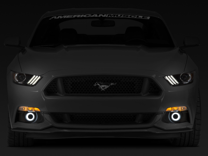Are you looking to upgrade the appearance and increase the visibility of your 2015-2017 Mustang? If so, a set of Raxiom LED Halo Fog Lights may be in your future. A direct fit replacement for your factory fog lights, these Raxiom Fog Lights feature a very unique halo design that looks great both on and off. Raxiom’s LED Halo Fog Lights are a functional appearance upgrade that will certainly improve the exterior styling of your S550 Mustang. These Raxiom Halo Fog Lights were designed with a round center opening and an integrated mess screen insert that allows outside air to easily flow through them. These openings will help to increase airflow under your car, or they can be ducted to your front brakes for increased cooling capacity. Raxiom manufactures their LED Halo Fog Lights to OEM standards for long lasting durability. Featuring textured opaque lenses and durable black plastic housings, these Raxiom Halo Fog Lights utilize bright white LEDs. Each housing is epoxy sealed to prevent moisture from harming the state of the art electronics found inside. Designed as a straight forward installation, these Raxiom LED Halo Fog Lights plug right into the factory wiring harness for a quick replacement for your factory fog lights. Bumper removal is suggested for installation, but not required. These lights mount to the factory brackets reusing the stock hardware. Wiring harness extensions are included, along with detailed instructions. These Fog Lights are designed for Mustangs sold in the US market. They will not function properly on Mustangs sold in the EU or UK.