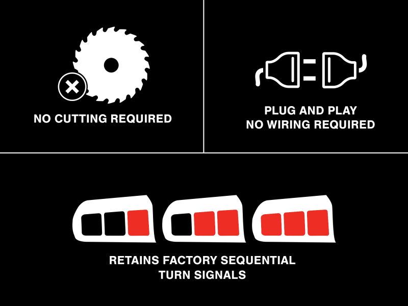 A pair of Raxiom Profile Smoked LED Tail Lights are a great way to add sleek, clean styling to the exterior of your S550 Mustang. Featuring black housings with smoked lenses, these Raxiom LED Tail Lights will make an impactful statement to the appearance of your S550 Mustang. Whether your Pony is your daily driver or a full blown track beast, these LED Tail Lights will be sure to set your Mustang apart from all the rest. These Raxiom Profile Tail Lights were designed to retain the very popular sequential function that not only looks awesome, but also supplies an added bit of safety when out cruising. When the turn signals are activated, they will sequence from the center light out and repeat until switched off. Please note that these lights do not sequence with the brake or hazard lights. Manufactured to precise standards from OEM quality materials, these Raxiom Profile Tail Lights are assembled with super bright red LEDs for use as turn signals and brake lights. These Tail Lights feature durable gloss black plastic housings with smoked polycarbonate lenses. Each Tail Light is weather-sealed to prevent dirt and moisture from harming the state of the art electronics found inside. Using basic hand tools, installation of these Tail Lights should take no longer than 30 minutes to complete. Raxiom designed their LED Tail Lights to be a direct plug and play replacement for your Mustang’s original factory housings. There is no cutting or modifications required for a clean straight forward install. Please note that these Lights reuses the original factory top trim plates. These Raxiom Profile Smoked LED Tail Lights will not only bring a fresh new look to your Mustang, but they also meet or exceed the strict guidelines set forth by the U.S. Department of Transportation (DOT) and the Society of Automotive Engineers (SAE), making them legal for street use. It will not function properly on Mustangs sold in the EU or UK without modifications being made to the wiring harness.