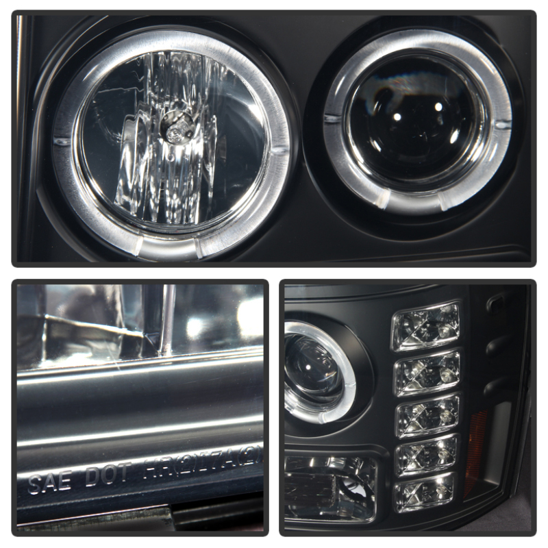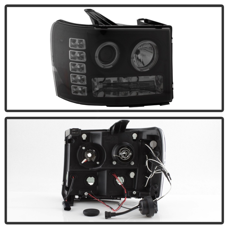Halo LED Projector Headlights; Replaceable LEDs; High H1/Low H1 Included; Black Smoke;