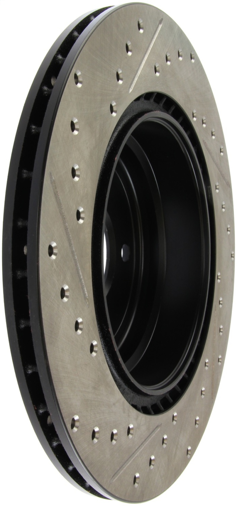 StopTech Drilled and Slotted Sport Rotors are 1-piece direct replacement brake discs for factory brake systems and stock calipers that look great behind your wheels * and offer significantly improved braking performance. The unique cross-drilling and slotting aids with heat and brake dust dispersal; prevents glazing of the pads; adds bite and improves wet and dry braking performance. Built to last; the black e-coating provides protection from corrosion and the high carbon metallurgy (in most applications) offers quieter operation; better crack resistance and increased performance.