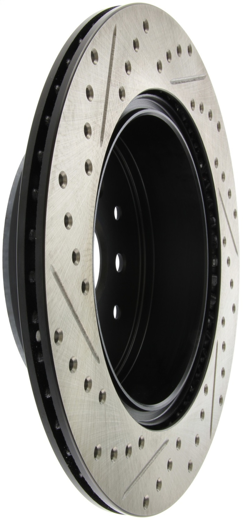 StopTech Drilled and Slotted Sport Rotors are 1-piece direct replacement brake discs for factory brake systems and stock calipers that look great behind your wheels * and offer significantly improved braking performance. The unique cross-drilling and slotting aids with heat and brake dust dispersal; prevents glazing of the pads; adds bite and improves wet and dry braking performance. Built to last; the black e-coating provides protection from corrosion and the high carbon metallurgy (in most applications) offers quieter operation; better crack resistance and increased performance.