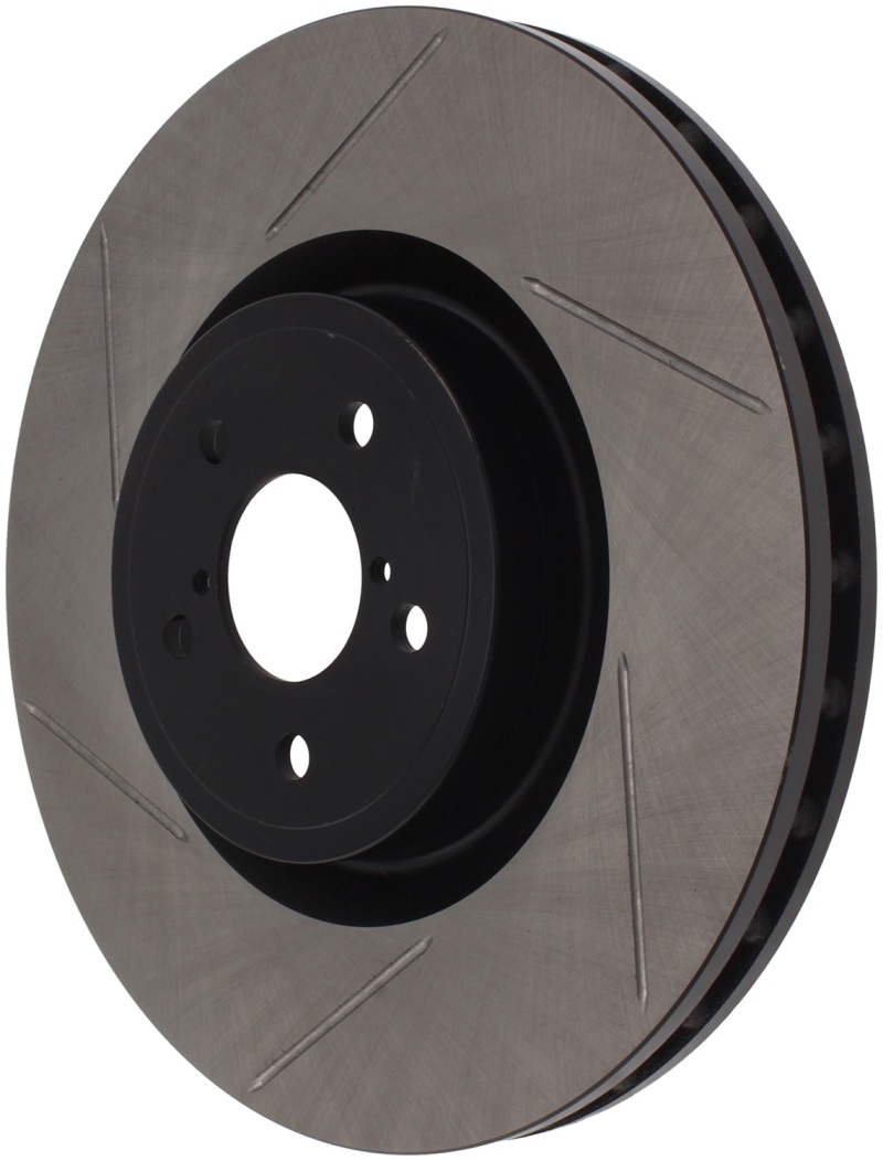 StopTech Slotted Sport Rotors are 1-piece direct replacement brake discs for factory brake systems and stock calipers that look great behind your wheels * and offer significantly improved braking performance. The unique slotting aids with heat and brake dust dispersal; prevents glazing of the pads; adds bite and improves wet and dry braking performance. Built to last; the black e-coating provides protection from corrosion and the high carbon metallurgy (in most applications) offers quieter operation; better crack resistance and increased performance.