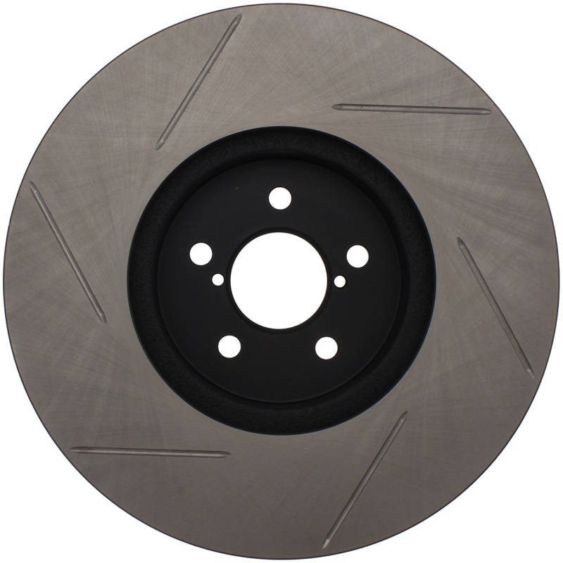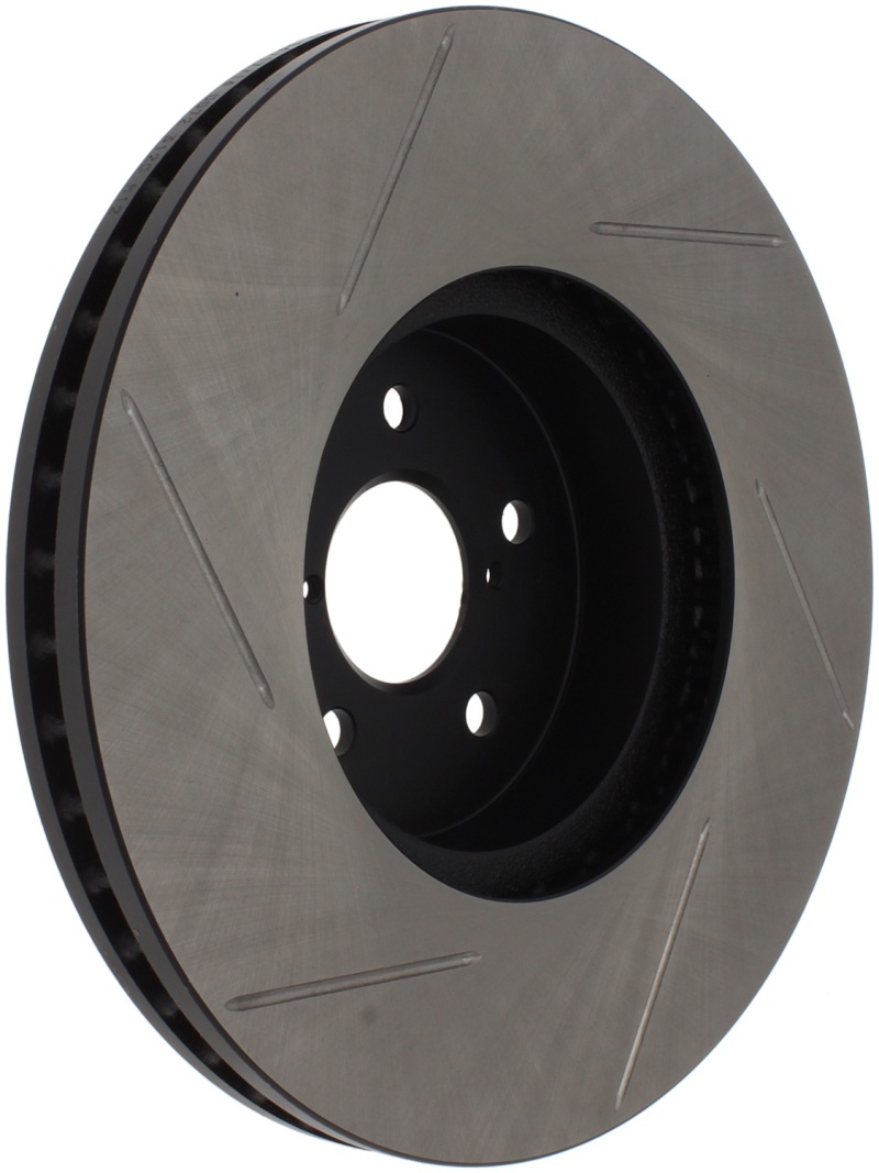 StopTech Slotted Sport Rotors are 1-piece direct replacement brake discs for factory brake systems and stock calipers that look great behind your wheels * and offer significantly improved braking performance. The unique slotting aids with heat and brake dust dispersal; prevents glazing of the pads; adds bite and improves wet and dry braking performance. Built to last; the black e-coating provides protection from corrosion and the high carbon metallurgy (in most applications) offers quieter operation; better crack resistance and increased performance.