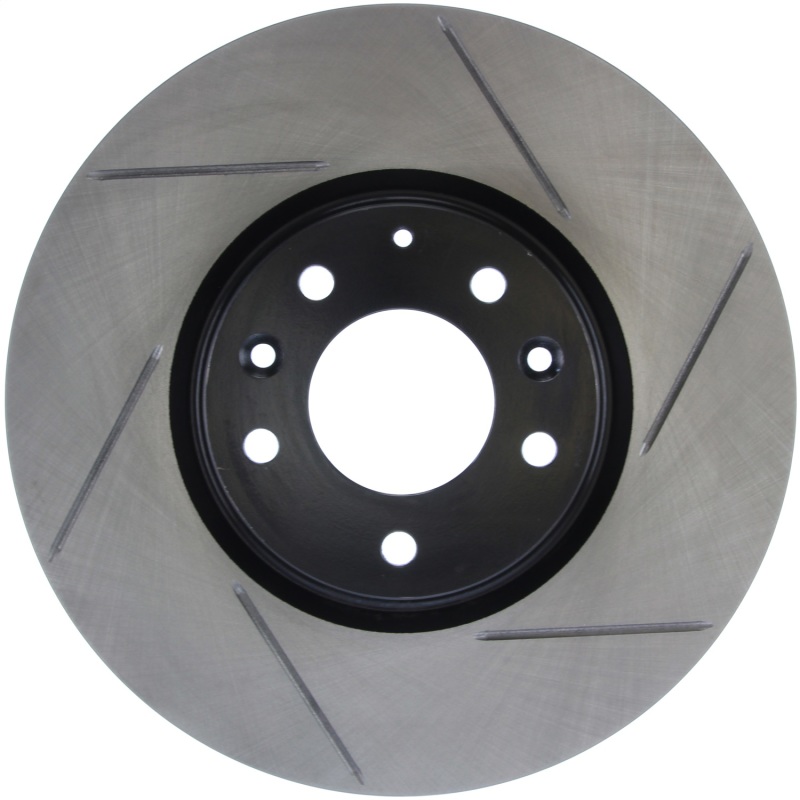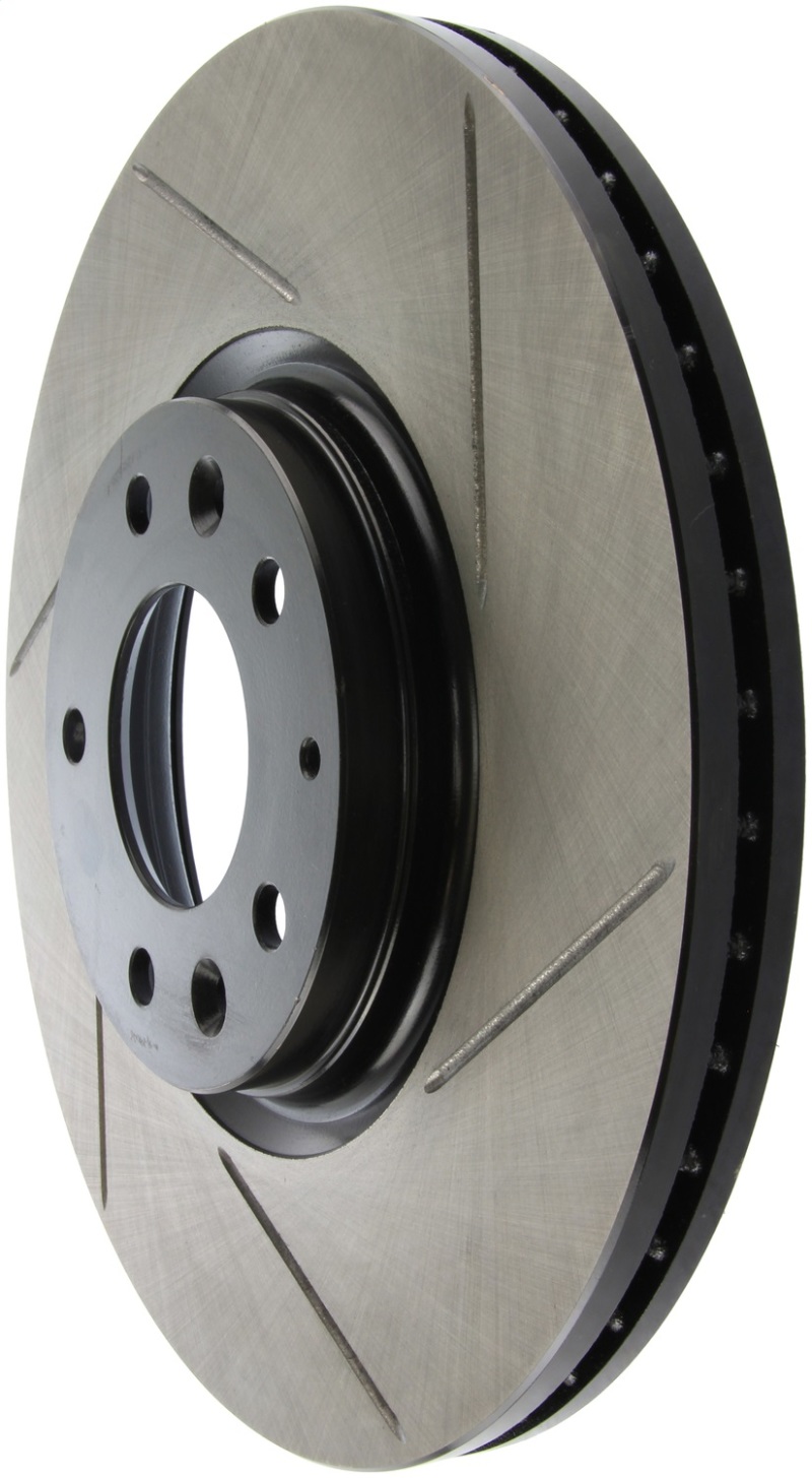 StopTech Slotted Sport Rotors are 1-piece direct replacement brake discs for factory brake systems and stock calipers that look great behind your wheels * and offer significantly improved braking performance. The unique slotting aids with heat and brake dust dispersal; prevents glazing of the pads; adds bite and improves wet and dry braking performance. Built to last; the black e-coating provides protection from corrosion and the high carbon metallurgy (in most applications) offers quieter operation; better crack resistance and increased performance.