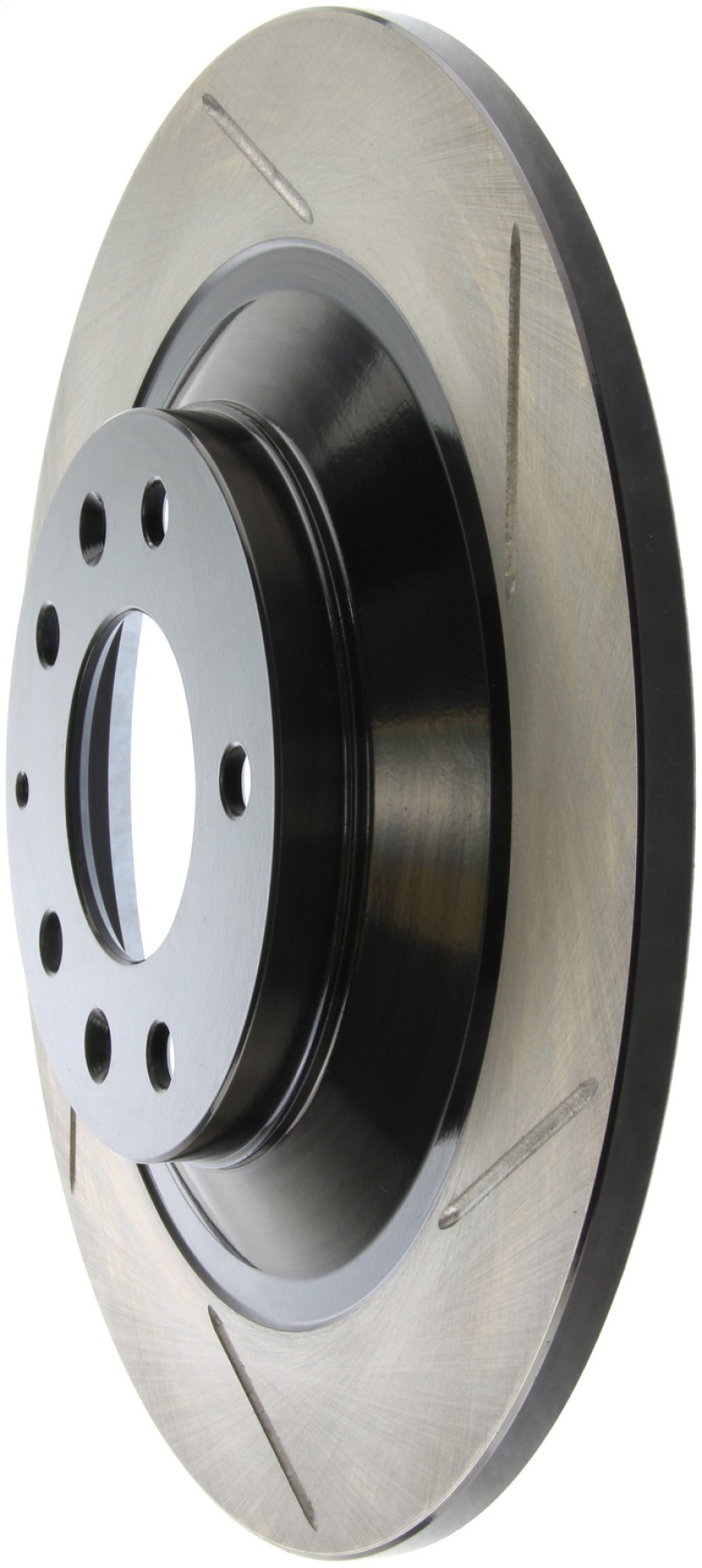 StopTech Slotted Sport Rotors are 1-piece direct replacement brake discs for factory brake systems and stock calipers that look great behind your wheels * and offer significantly improved braking performance. The unique slotting aids with heat and brake dust dispersal; prevents glazing of the pads; adds bite and improves wet and dry braking performance. Built to last; the black e-coating provides protection from corrosion and the high carbon metallurgy (in most applications) offers quieter operation; better crack resistance and increased performance.