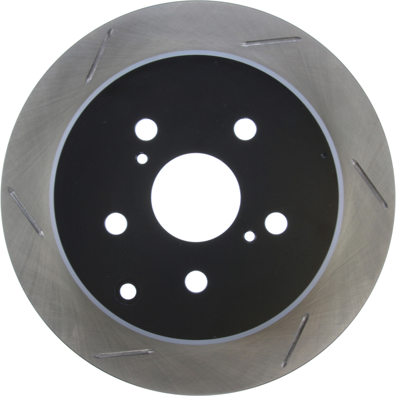 StopTech Slotted Sport Rotors are 1-piece direct replacement brake discs for factory brake systems and stock calipers that look great behind your wheels * and offer significantly improved braking performance. The unique slotting aids with heat and brake dust dispersal; prevents glazing of the pads; adds bite and improves wet and dry braking performance. Built to last; the black e-coating provides protection from corrosion and the high carbon metallurgy (in most applications) offers quieter operation; better crack resistance and increased performance.