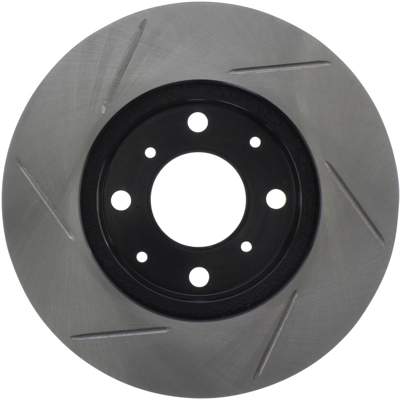 StopTech Slotted Sport Rotors are 1-piece direct replacement brake discs for factory brake systems and stock calipers that look great behind your wheels * and offer significantly improved braking performance. The unique slotting aids with heat and brake dust dispersal; prevents glazing of the pads; adds bite and improves wet and dry braking performance. Built to last; the black e-coating provides protection from corrosion and the high carbon metallurgy (in most applications) offers quieter operation; better crack resistance and increased performance.