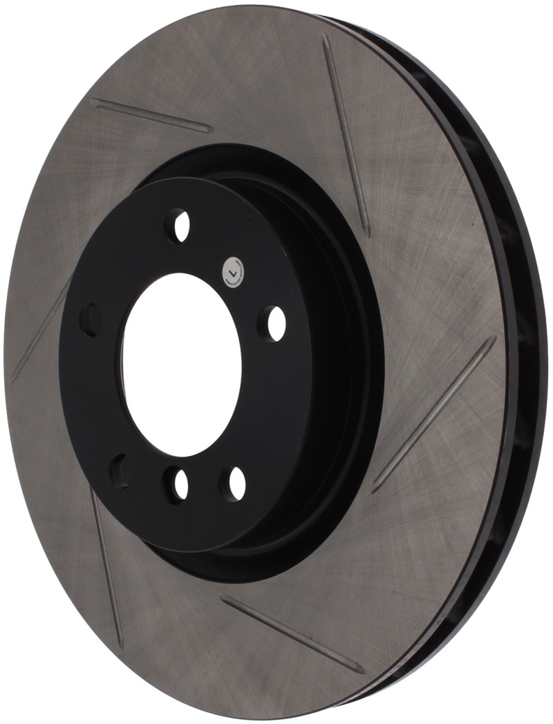 StopTech Slotted Sport Rotors are 1-piece direct replacement brake discs for factory brake systems and stock calipers that look great behind your wheels * and offer significantly improved braking performance. The unique slotting aids with heat and brake dust dispersal; prevents glazing of the pads; adds bite and improves wet and dry braking performance. Built to last; the black e-coating provides protection from corrosion and the high carbon metallurgy (in most applications) offers quieter operation; better crack resistance and increased performance.
