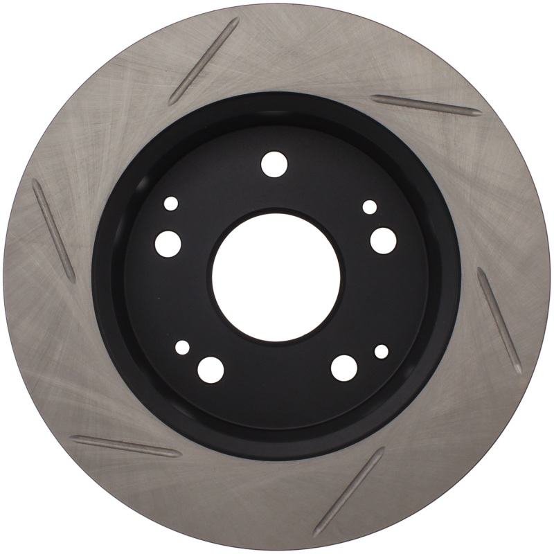 StopTech Slotted Sport Rotors are 1-piece direct replacement brake discs for factory brake systems and stock calipers that look great behind your wheels * and offer significantly improved braking performance. The unique slotting aids with heat and brake dust dispersal; prevents glazing of the pads; adds bite and improves wet and dry braking performance. Built to last; the black e-coating provides protection from corrosion and the high carbon metallurgy (in most applications) offers quieter operation; better crack resistance and increased performance.