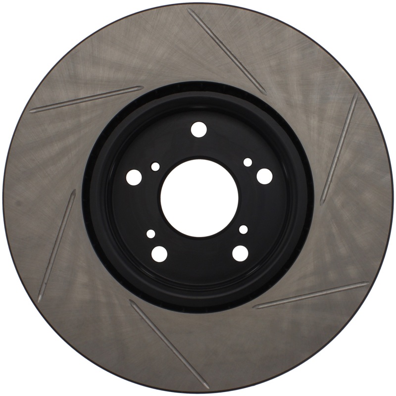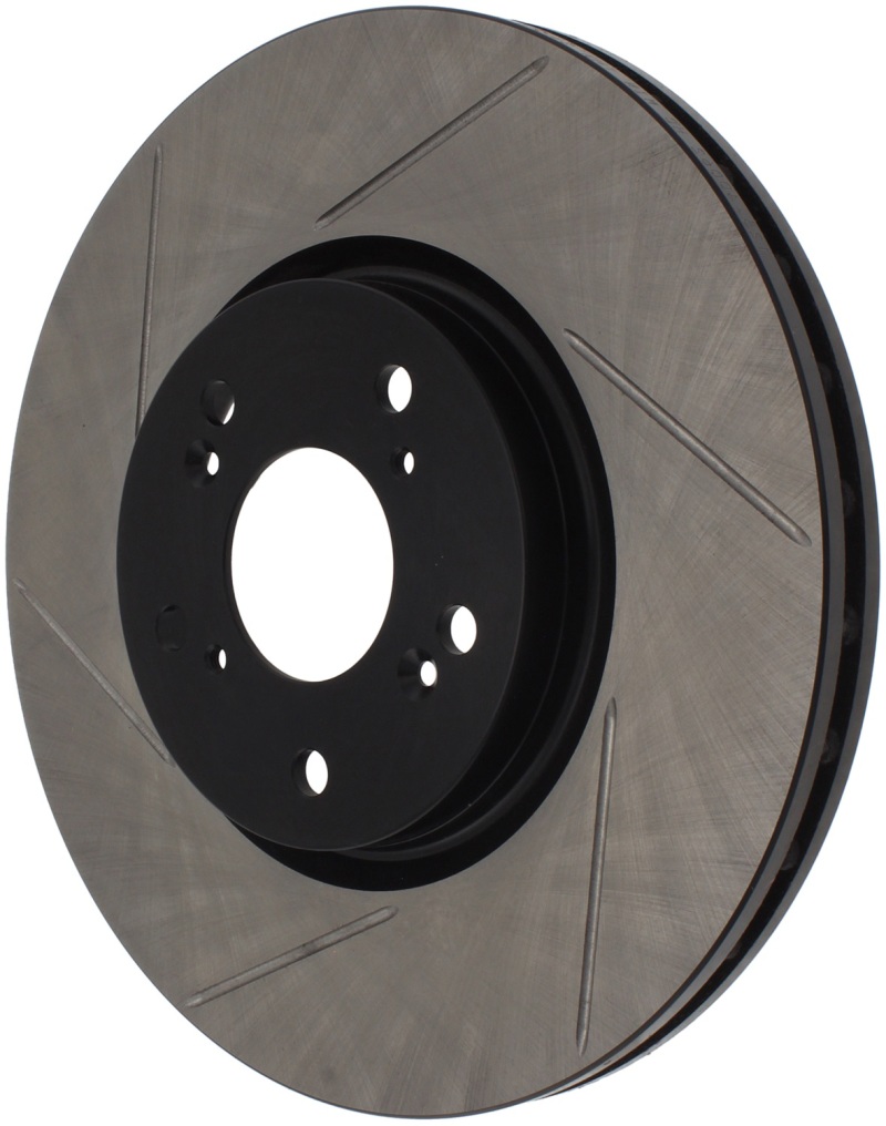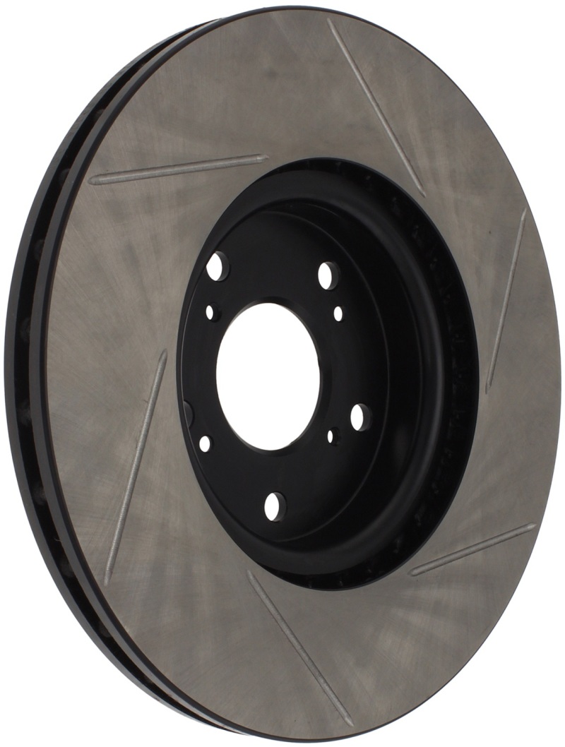 StopTech Slotted Sport Rotors are 1-piece direct replacement brake discs for factory brake systems and stock calipers that look great behind your wheels * and offer significantly improved braking performance. The unique slotting aids with heat and brake dust dispersal; prevents glazing of the pads; adds bite and improves wet and dry braking performance. Built to last; the black e-coating provides protection from corrosion and the high carbon metallurgy (in most applications) offers quieter operation; better crack resistance and increased performance.