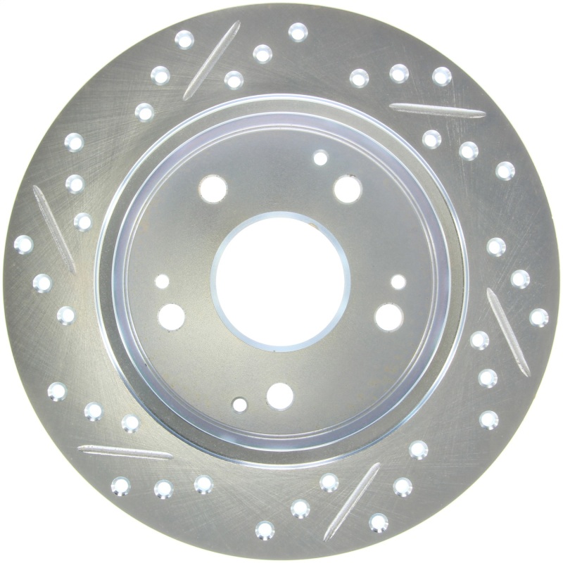 StopTech Drilled and Slotted Sport Rotors are 1-piece direct replacement brake discs for factory brake systems and stock calipers that look great behind your wheels * and offer significantly improved braking performance. The unique cross-drilling and slotting aids with heat and brake dust dispersal; prevents glazing of the pads; adds bite and improves wet and dry braking performance. Built to last; the black e-coating provides protection from corrosion and the high carbon metallurgy (in most applications) offers quieter operation; better crack resistance and increased performance.